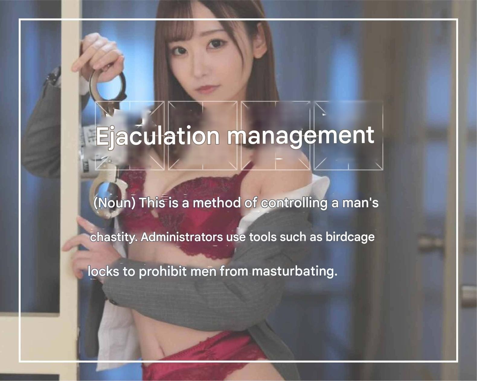 Ejaculatory Control uses abstinence to reversely increase sexual desire, controlling the Managed's body and mind. Making the Managed believe the Manager is the true owner of their sexual organ, with full control over ejaculation, erection, touching, and sex.