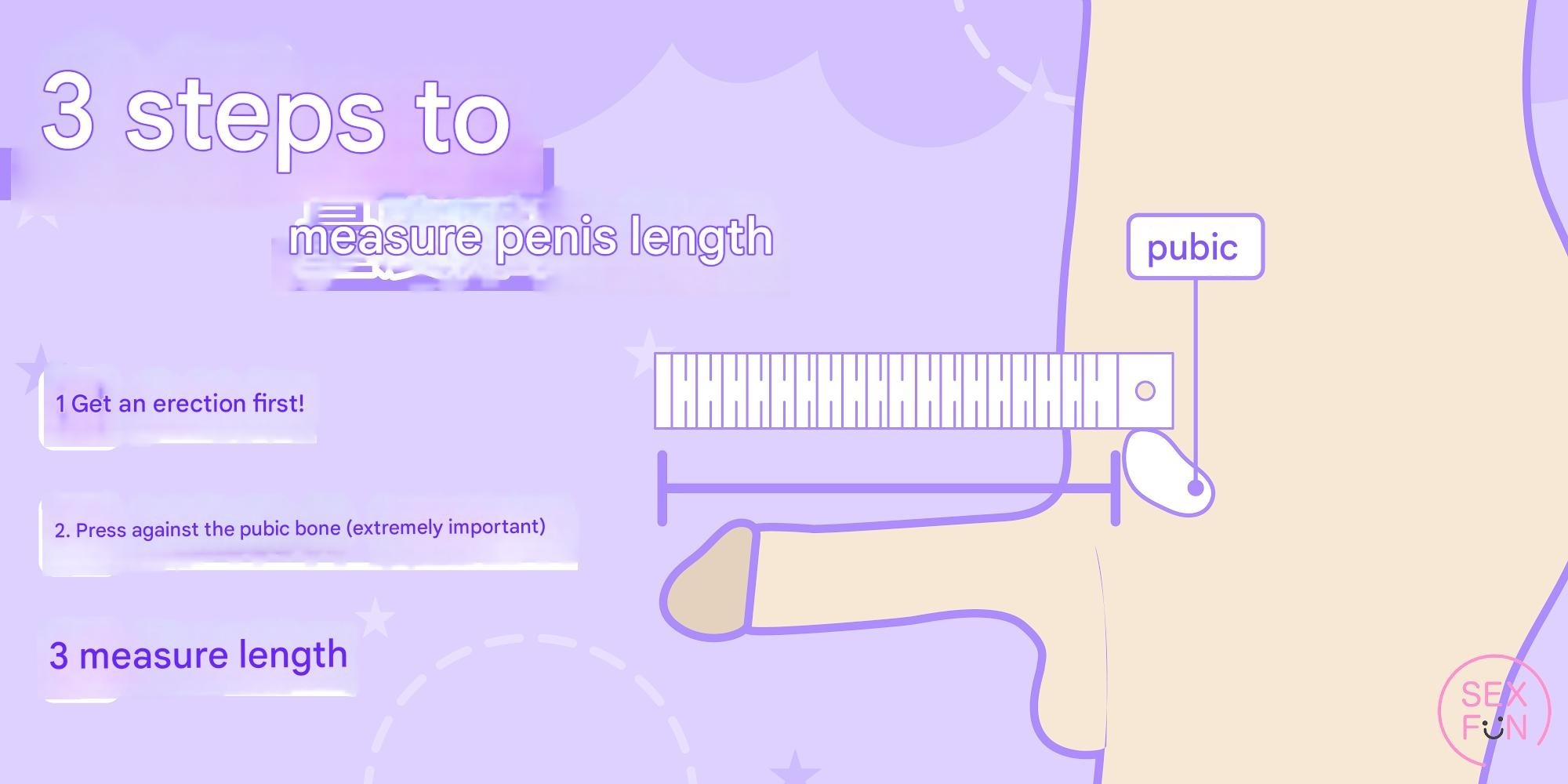 1 Get 100 % hard! 2 Press ruler firmly into pubic bone (push past fat/pubic hair) 3 Read the number at the tip
