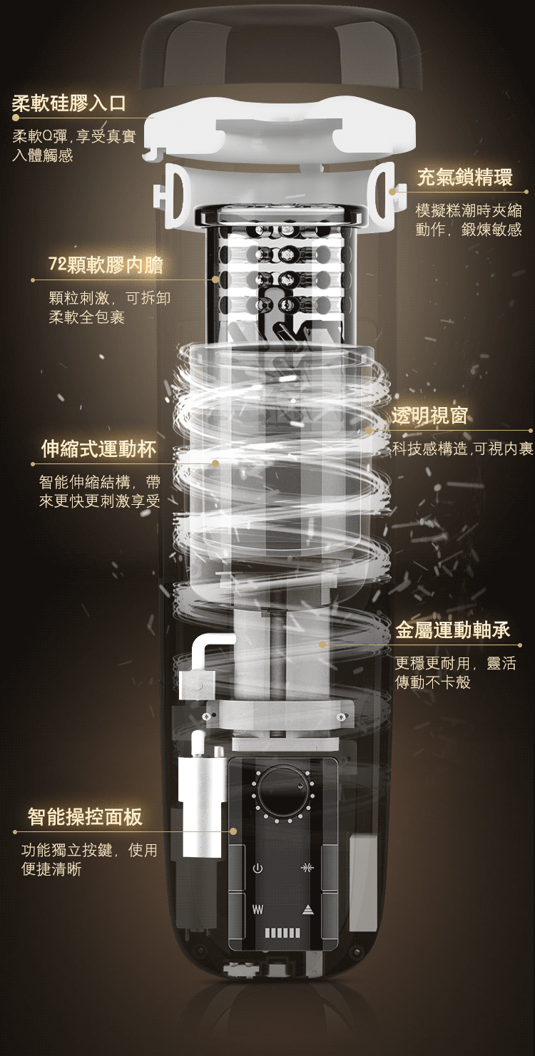 Erocome推出的全新電動飛機杯,是之前獅子座飛機杯的增強版。新版加入了自動伸縮旋轉、感應加壓、10種模式、情趣發聲等不同的高階功能於一身,為你提供最全面最舒適的快感。飛機杯上的可視前窗,令你能夠看到自己的巨龍在飛機杯中被旋轉、擠壓,增加刺激感。同時,飛機杯採用了超柔軟的矽膠,令產品內部如真人陰道般柔軟,再加上恆溫控制加熱功能,更加像在進行真實性交。配合情景發聲功能,只要你閉上雙眼,就能感受到你心中的女神在你身上來回摩擦的快感。