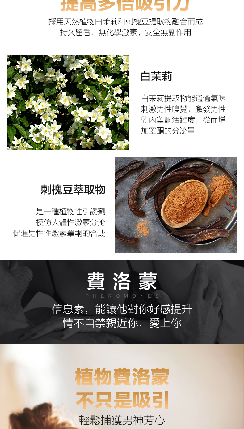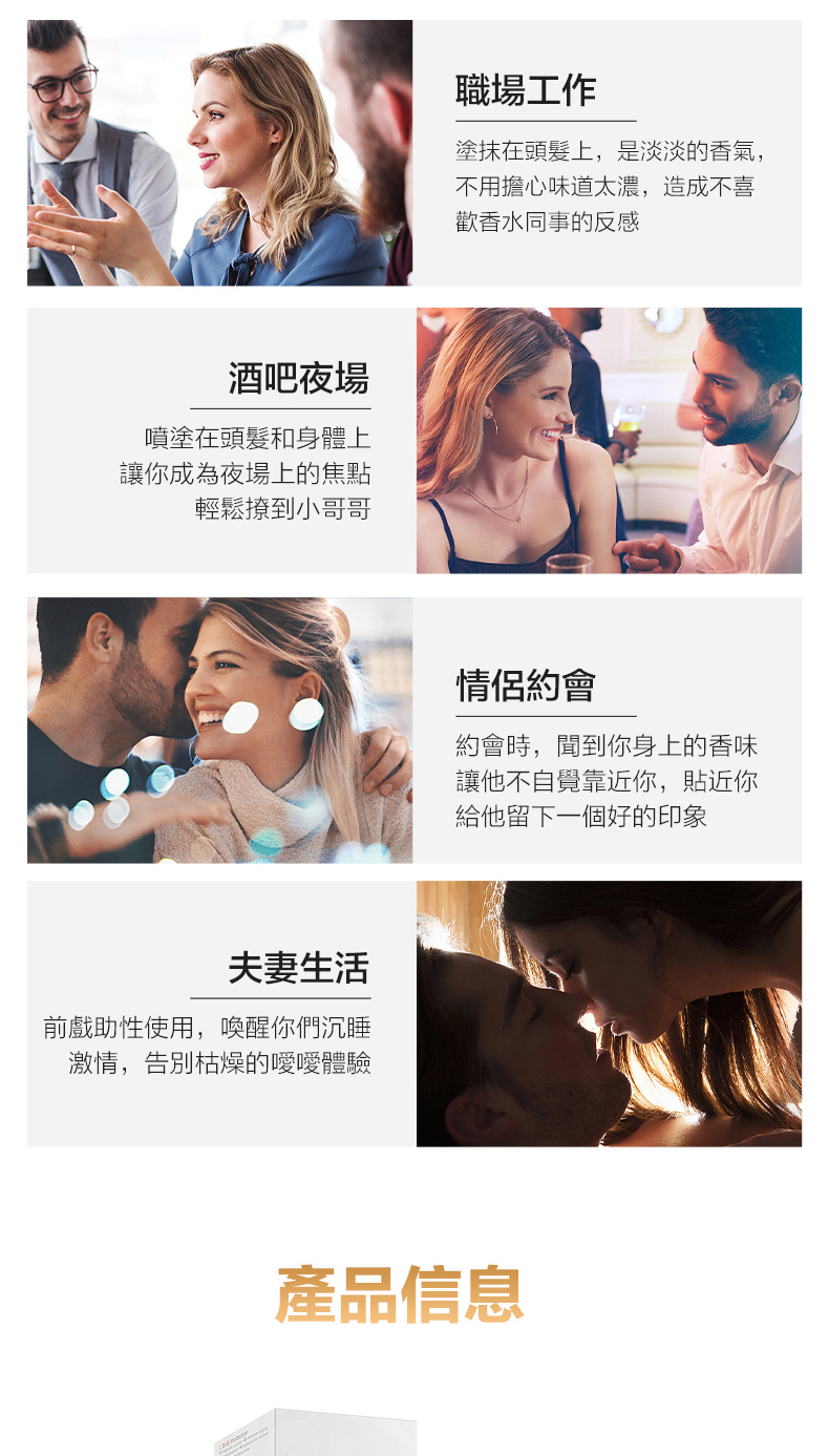 活性成分 – Sensfeel™ For Her Sexual 信息素是一組由生物體產生的無味且不易察覺的物質,當其釋放時,會促進同一物種個體之間的化學吸引力。
