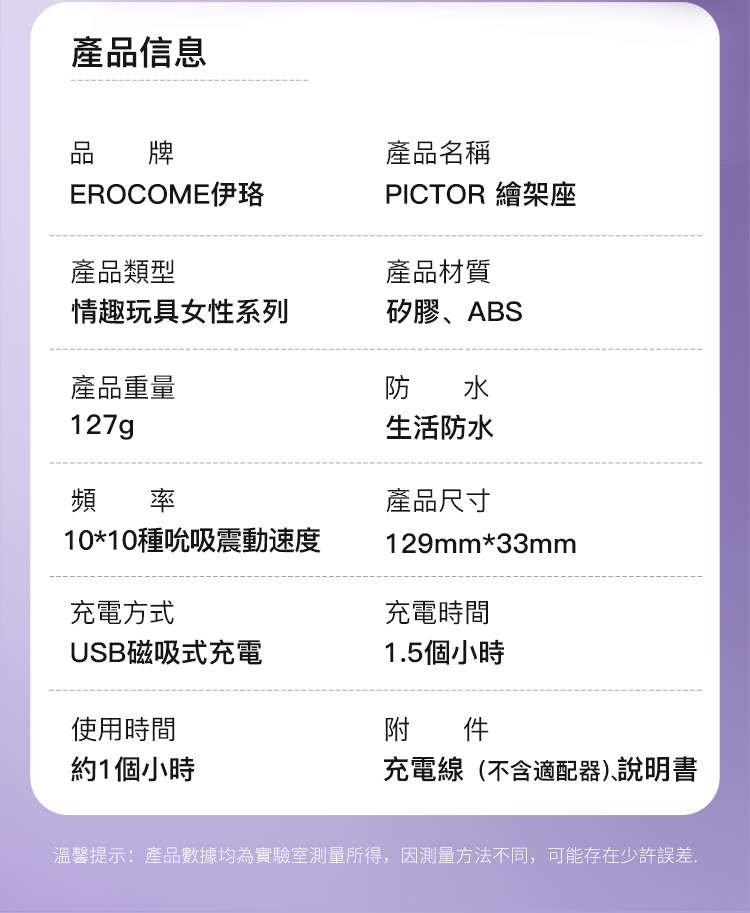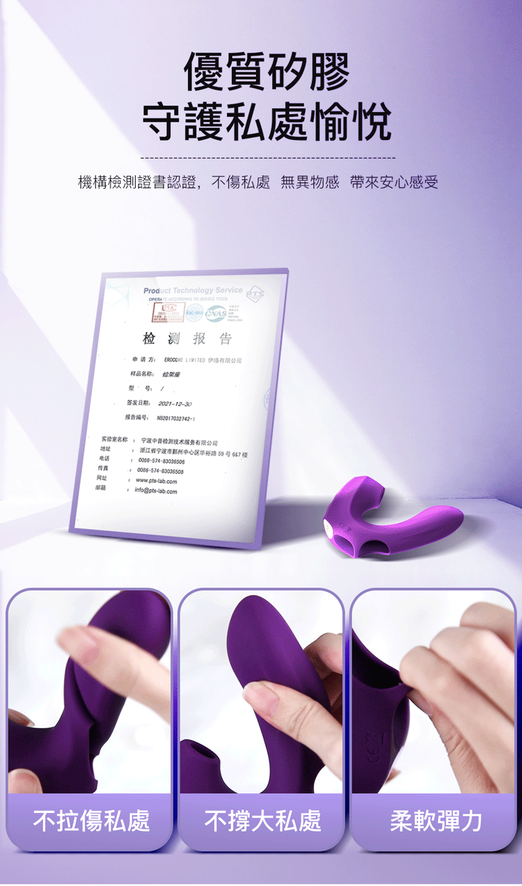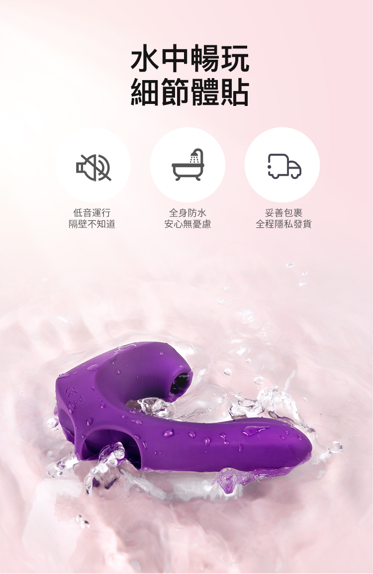 機身採用柔軟矽膠製造,感覺舒適,同時可以防止被指甲刮傷。內置有10種震動模式、吸豆豆的功能,讓你體驗到比單單用手指更爽快刺激的高潮。因為設計上非常有彈性,可以適合你任何角度的進入,指套上有卡位,戴上後能緊貼手指,不怕在激烈的過程中掉落。超靜音設計,夜裏使用也不怕被發現。