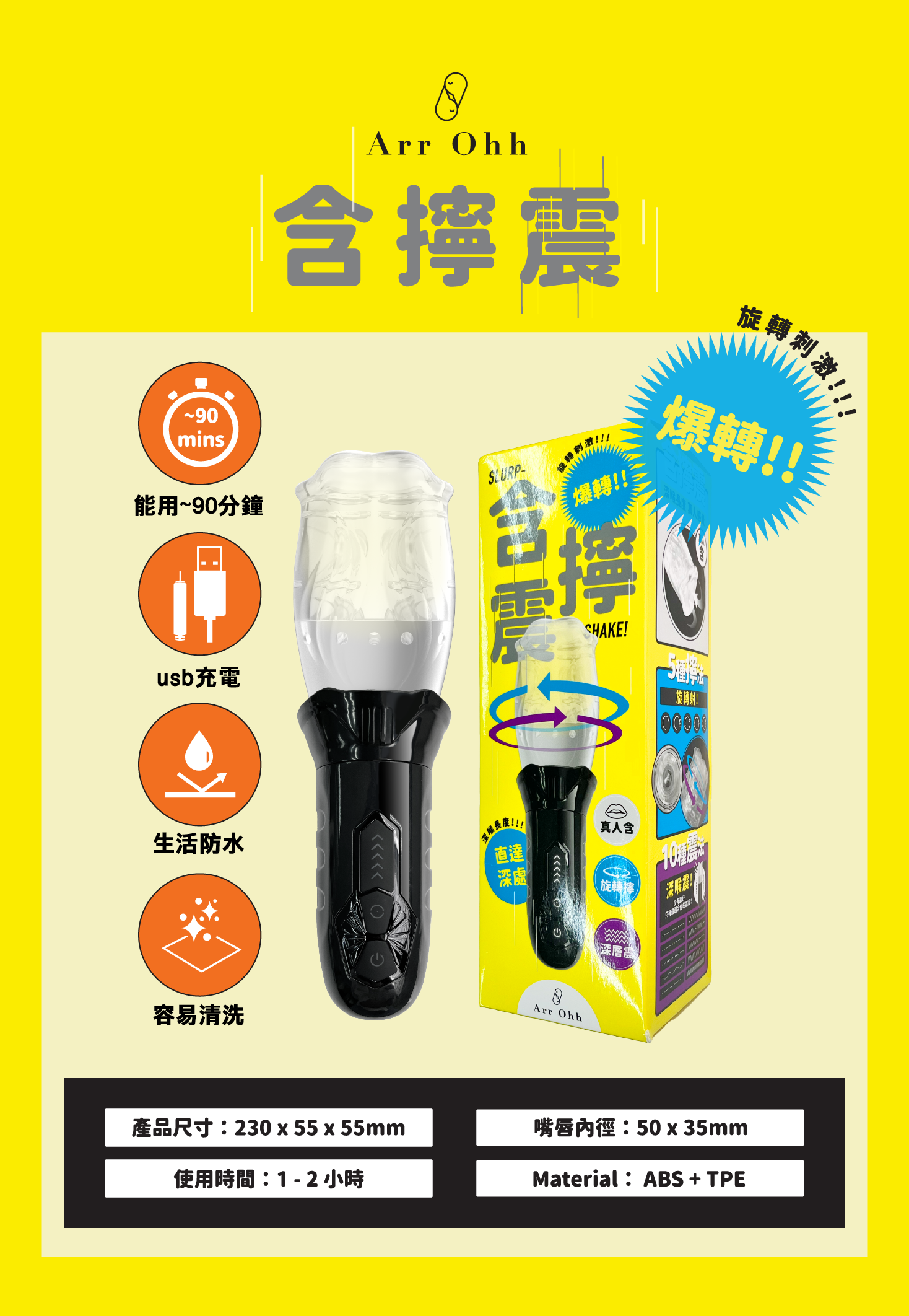 「含擰震」由3種不同的特點令你得到強烈刺激感。給你真人含住的電動口交感覺、擰轉你的敏感位加上適當的震動力,就如名字一樣含撚震不會令你失望。旋轉飛機杯評測,讓你未使用就感受到它的瑚寄,如果只能購買一款旋轉杯,這絕對是你的不二之選。