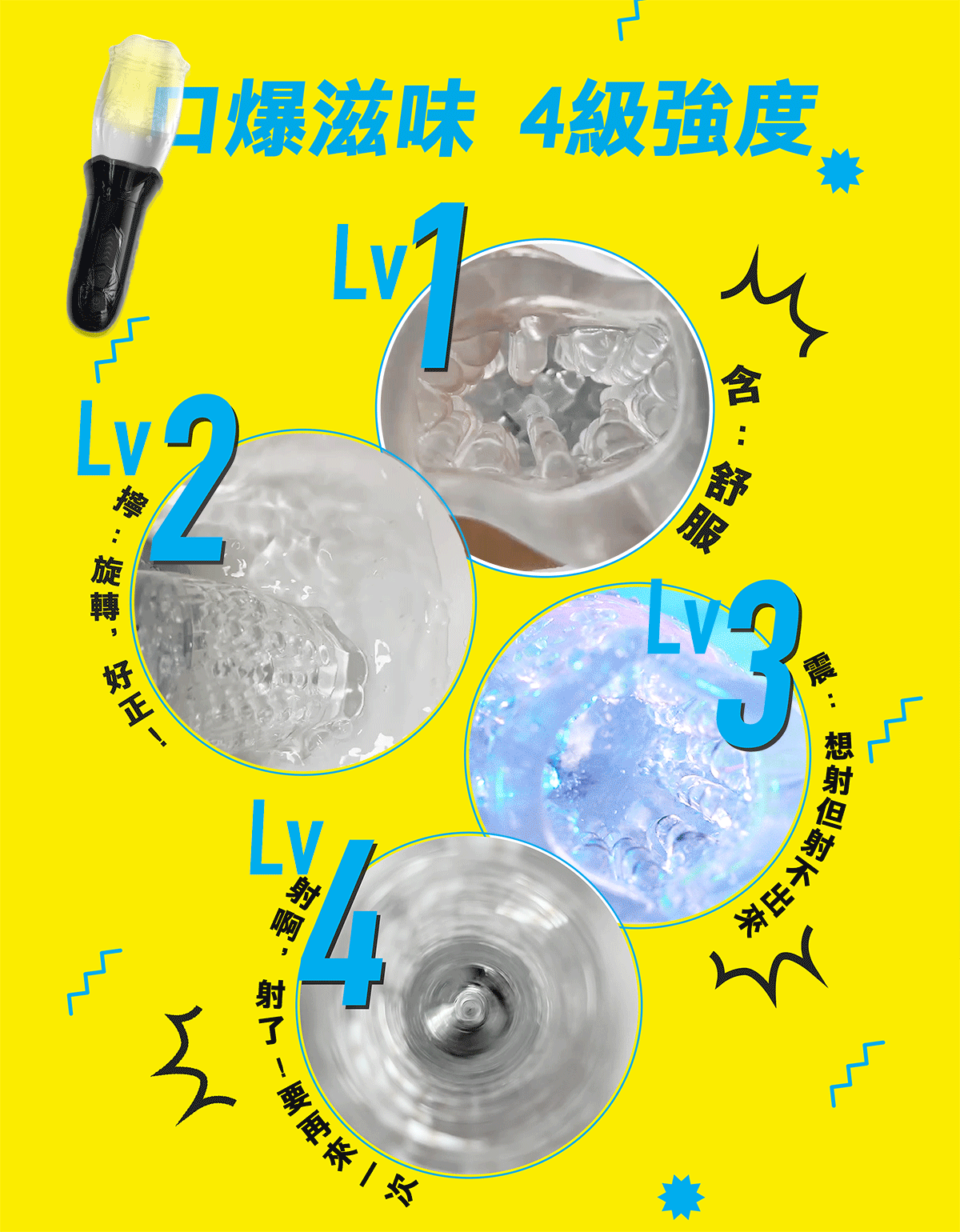 「含擰震口交旋轉杯」,由3種不同的特點令你得到強烈刺激感。給你真人含住的感覺、擰轉你的敏感位加上適當的震動力,3種的刺激感令你得到更舒服的體驗。這絕對是你感受不到的口交杯。