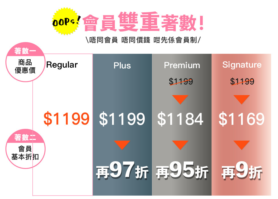 全店,滿$1000﹕95折優惠 ; 再送$88購物金下次使用(需登入會員才可)