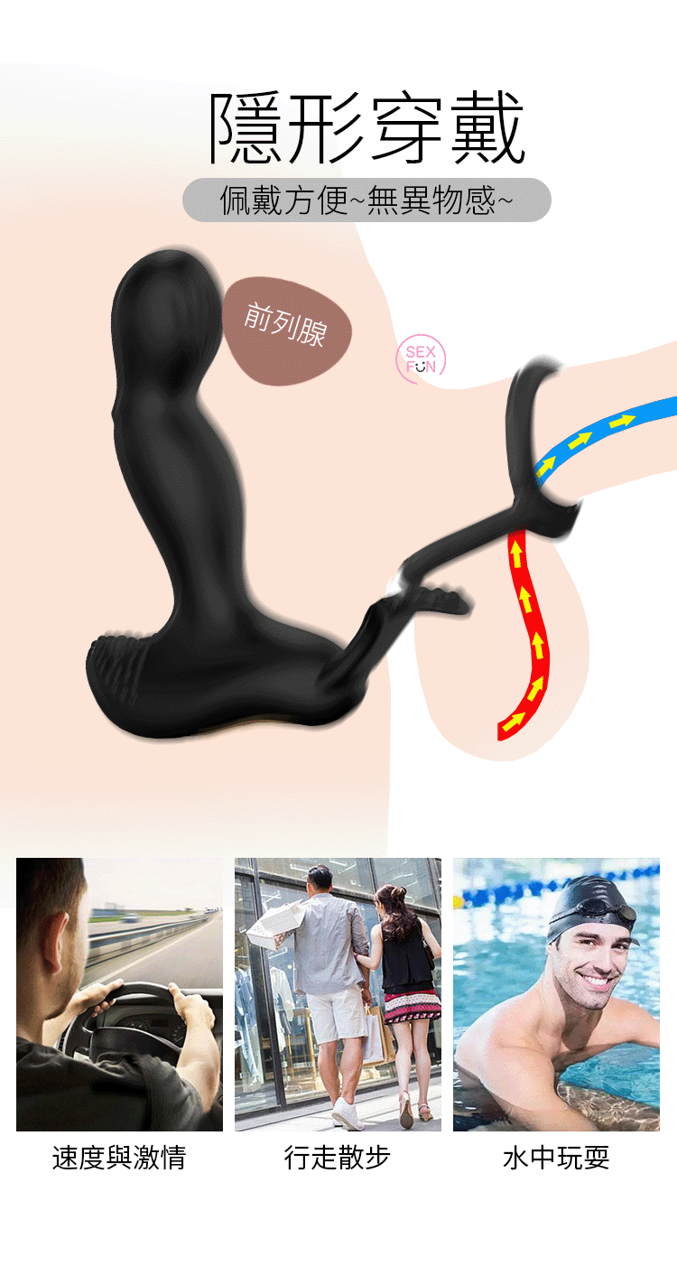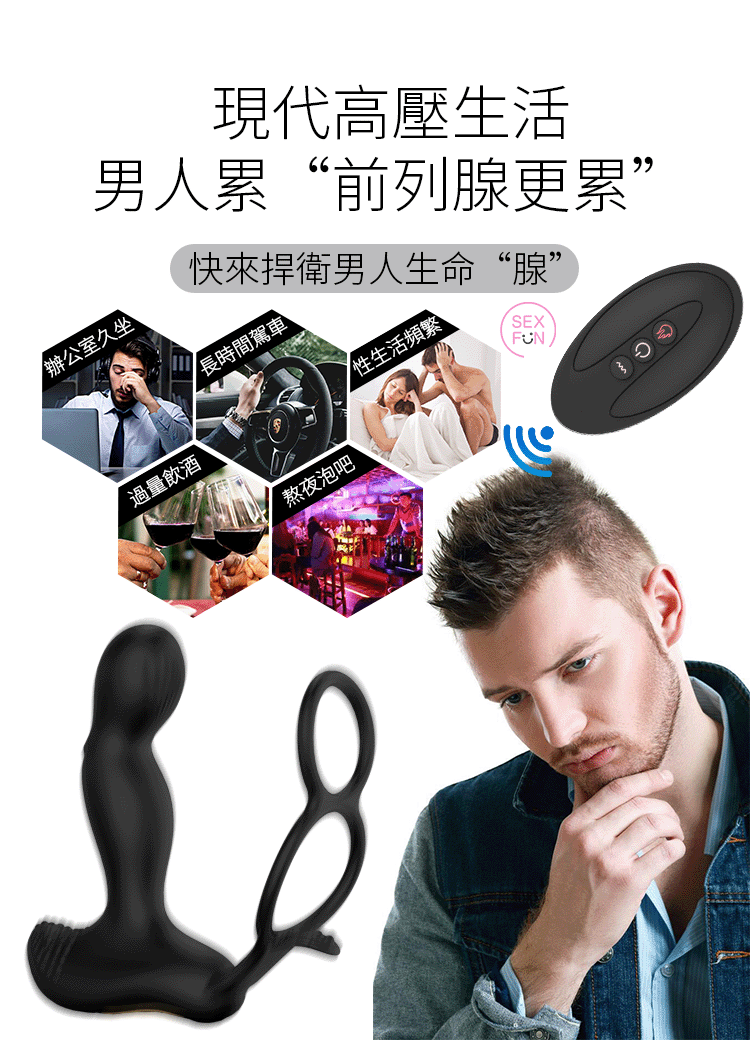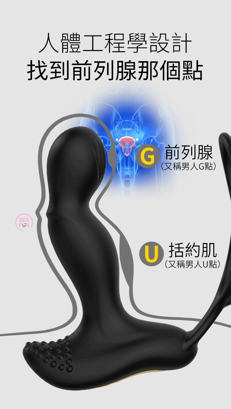 這款前列腺震動器配備無線遙控掣操控方便,附加彈性雙環給你鎖莖鎖蛋蛋,稱得上有前有後! 震動器有 7 種模式及兩個強大摩打,1個是提供深度內部按摩,另1個摩打刺激會陰,可精準控制震到你想要的位置! 而且! 生活防水設計,於洗澡時都可使用! 最適合清洗乾淨自己同機體後而使用。